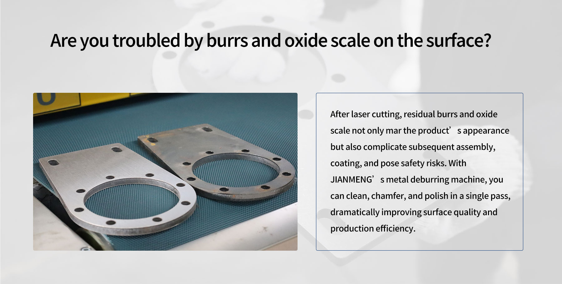 Is déantúsóir ceannródaíoch é JM a dhíríonn ar mheaisín miotail miotail. Is gléas tionsclaíoch é Meaisín Deburring Metal atá deartha go sonrach chun burrs, imill ghéara, agus sraitheanna ocsaíd a bhaint ó chodanna cruach miotail, plátaí miotail, agus oibre. Baintear úsáid fhorleathan as meaisín dochreidte miotail i bpróiseáil miotail, i ndéantúsaíocht innealra, i gcomhpháirteanna feithicleacha, i struchtúr cruach, i dtógáil long, agus i gcaibinéid leictreacha.